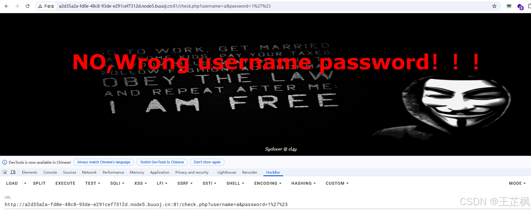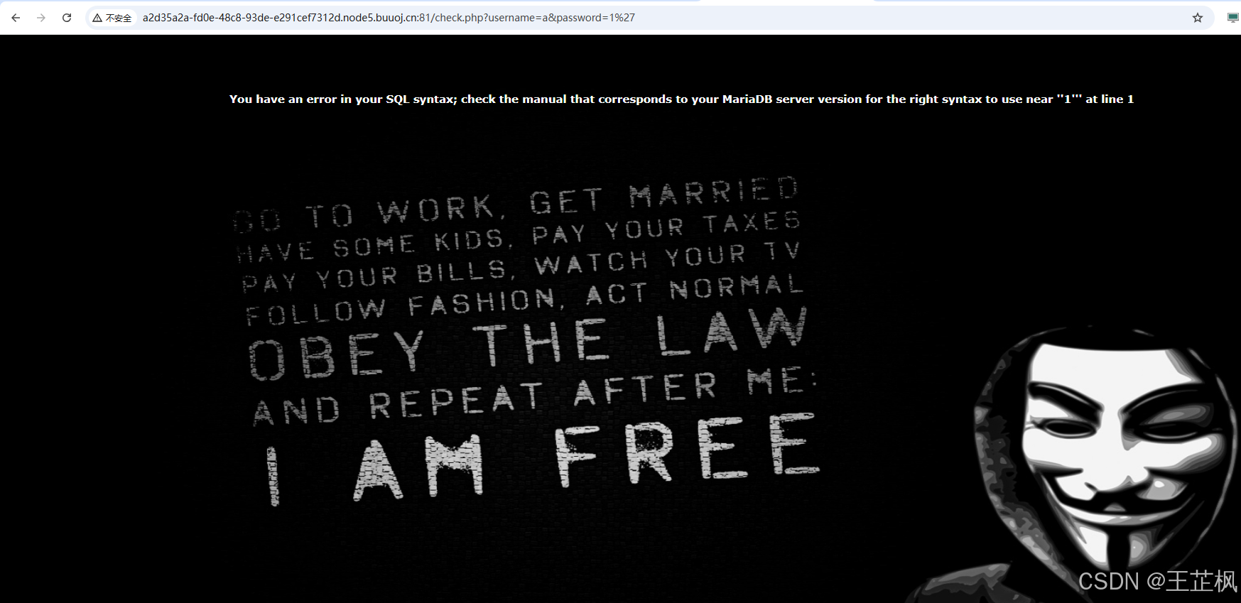 http://a2d35a2a-fd0e-48c8-93de-e291cef7312d.node5.buuoj.cn:81/check.php?username=a&password=1%27