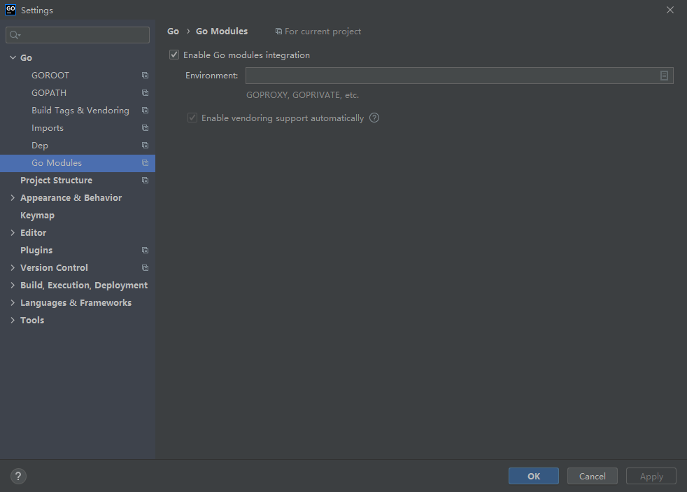 auto:如果当前项目下有 go.mod 文件,就采用 on 的形式,不存在采用 off 的形式。