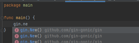 手写一部分代码时,会自动提示,回车后会自动引入 github.com/gin-gonic/gin 包,完整代码如下: