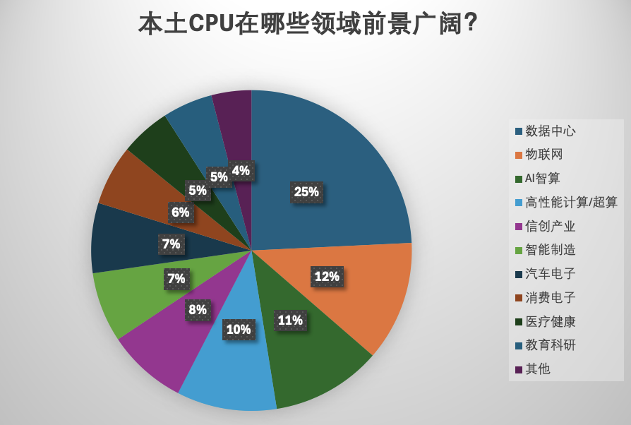 针对业界对于本土CPU持续提升竞争力、以及所面向应用领域的发展前景,进行数据统计。结果显示,持续提升产品性能、服务支持、实现技术自主可控这些因素,被认为是提升竞争力的关键;应用方面,数据中心、物联网、AI智算、高性能计算等领域,被普遍看好。