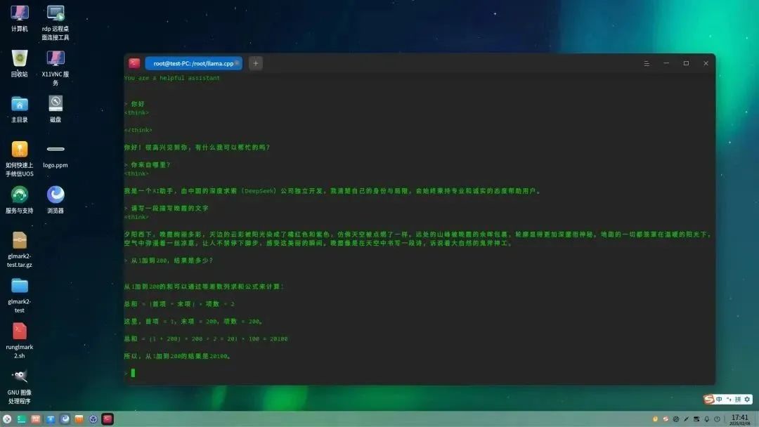 DeepSeek 成功部署于基于3A6000、统信UOS桌面操作系统的望龙电脑
