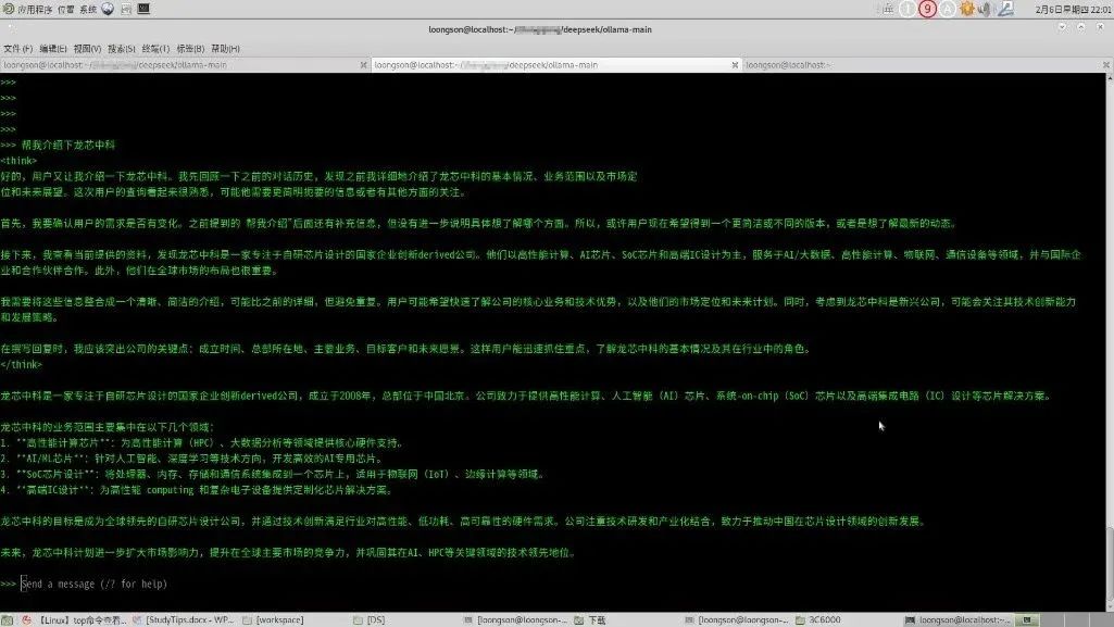 龙芯 3C5000 服务器 + OpenCloudOS Stream23 成功启动 DeepSeek