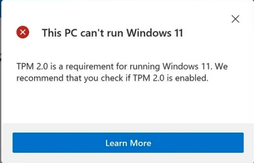 彼时很多人在使用自己旧设备升级到 Windows 11 时,会尴尬地收到一个弹窗消息: