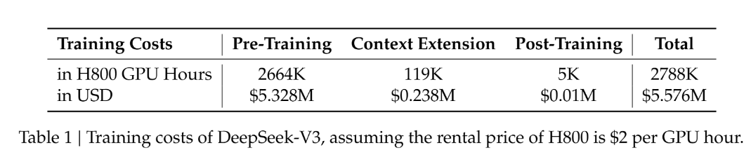 总体而言,该公司称,DeepSeek-V3 的全部训练任务在约 278.8 万个 H800 GPU 小时内就能完成。假设租赁价格为每 GPU 每小时租金为 2 美元,则约为 557 万美元,这比以往大语言模型动辄上亿美元的预训练成本明显要低得多。例如,Llama-3.1 模型的训练投入估计超过 5 亿美元。