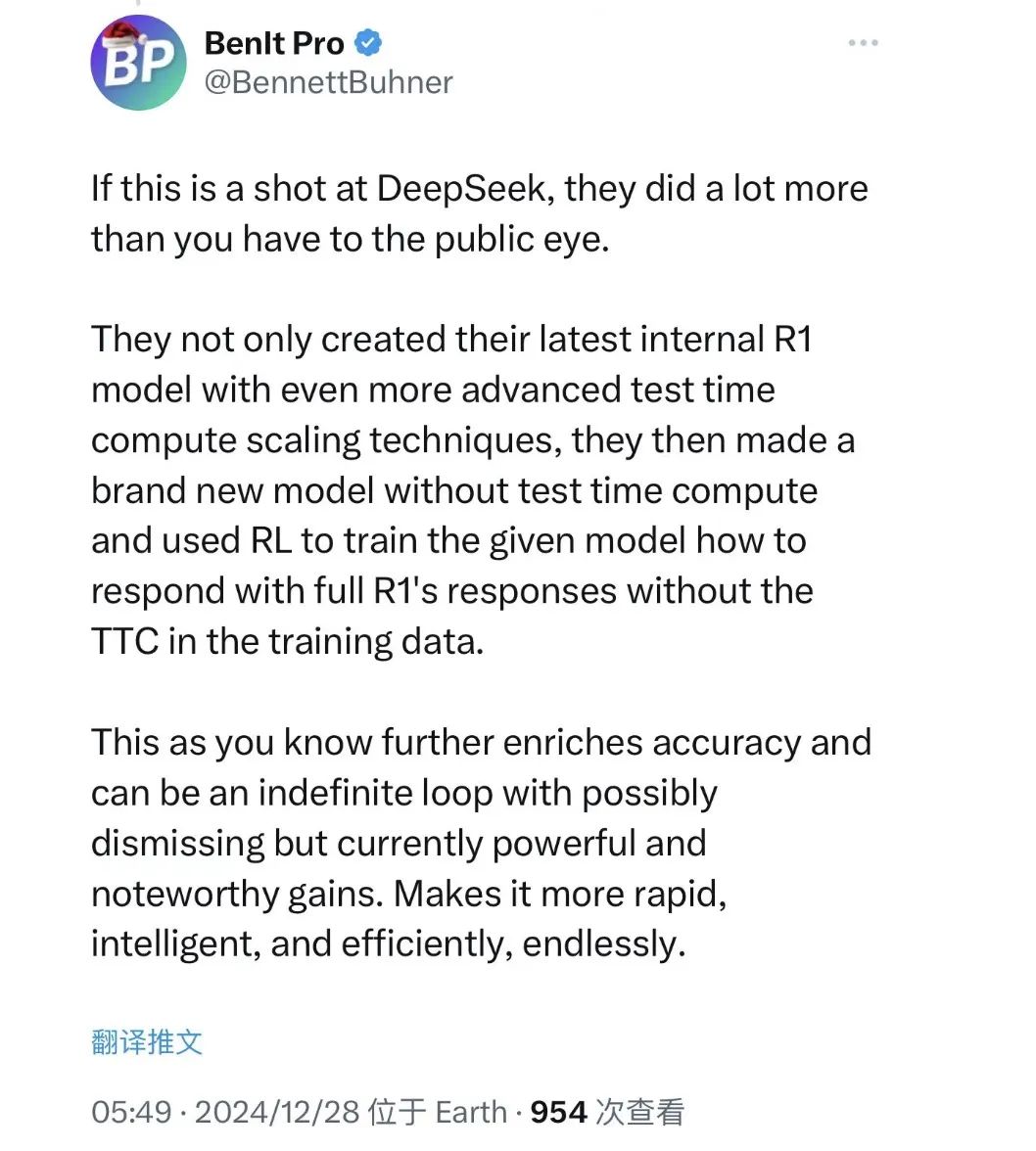 此外,也有网友就 DeepSeek-V3 采用 H800 GPU 达到的低训练成本讨论到美国芯片出口管制的问题。Kaggle 大神、数据科学家 Bojan Tunguz 这样评价道,“所有对高端半导体的出口禁令实际上可能以可以想象的‘最糟糕’的方式适得其反。它们似乎迫使中国研究人员比原本更聪明、更节省资源。这似乎也证实了我自己的假设,即我们离拥有 AI 的 ML 部分的最佳算法还差得很远。”