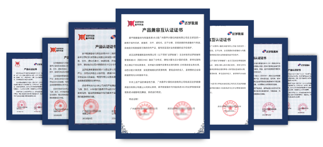 在达梦每一款产品的研发迭代过程中,鼎甲与达梦的研发团队保持着长期而深入的合作,以确保每款产品的顺利发布。鼎甲的相关产品也得以实现互相兼容,包括最新发布的达梦 8.0 版本及其集群部署环境,双方均已完成互为兼容认证。此外,鼎甲也是业内首批实现此认证的数据保护企业之一。