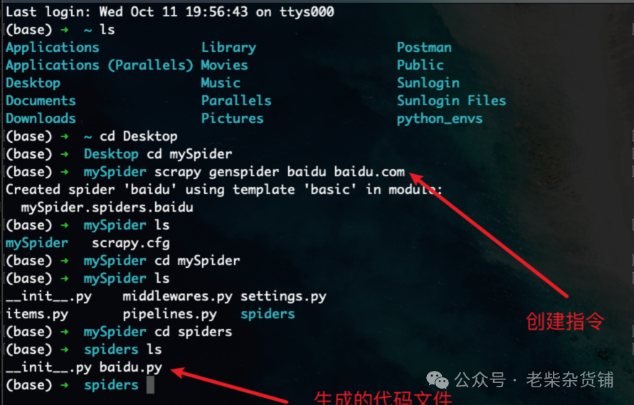# scrapy genspider 爬虫名 允许爬取的域名scrapy genspider baidu baidu.com