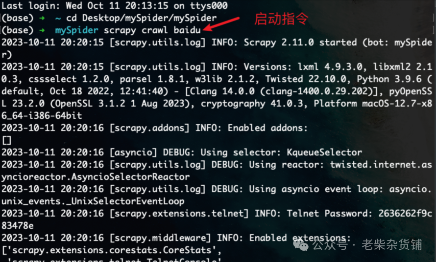 # 启动命令中的爬虫名称需要和创建时设置的爬虫名称保持一致scrapy crawl baidu