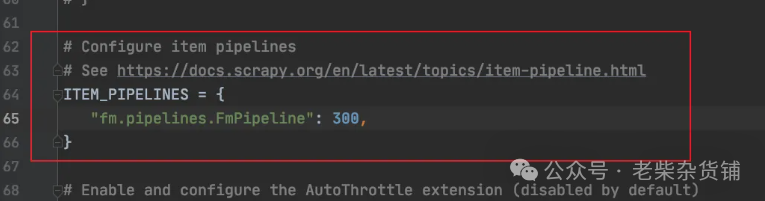 在settings.py文件中开启管道配置