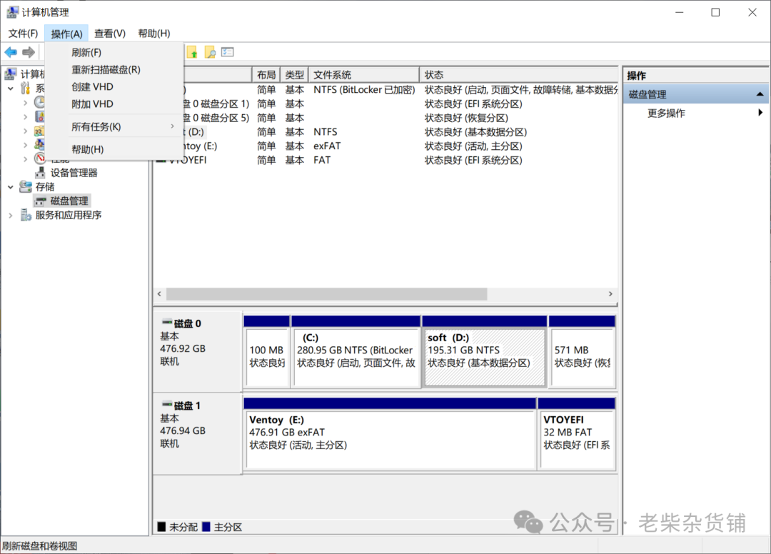 图形界面:通过“磁盘管理”工具选择“创建VHD”,设置类型与大小。