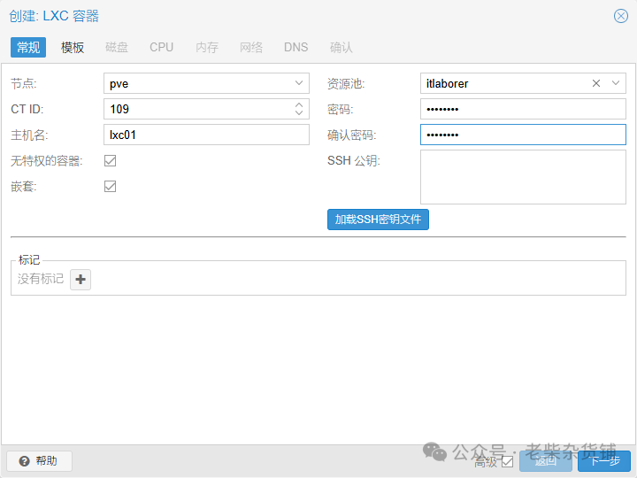 创建 LXC 容器(特权模式):