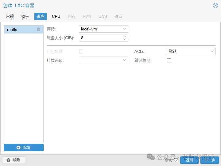 磁盘:默认 8GB,建议根据需求调整(如 Docker 容器分配 20-50GB)。(存储需有rootfs权限,否则无法选择)