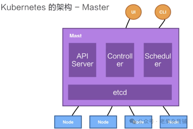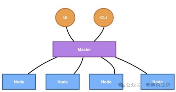 所有 UI 的、clients、这些 user 侧的组件,只会和 Master 进行连接,把希望的状态或者想执行的命令下发给 Master,Master 会把这些命令或者状态下发给相应的节点,进行最终的执行。