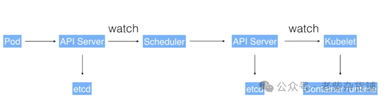 这个例子我们可以看到:这些组件之间是如何相互沟通相互通信,协调来完成一次Pod的调度执行操作的。