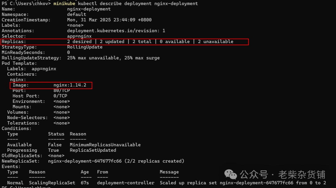 minikube kubectl describe deployment nginx-deployment