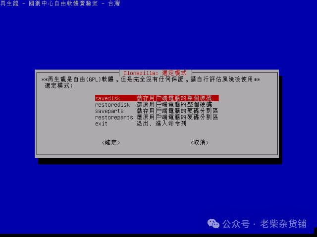整盘备份:选择 savedisk(保存整个磁盘为镜像)。