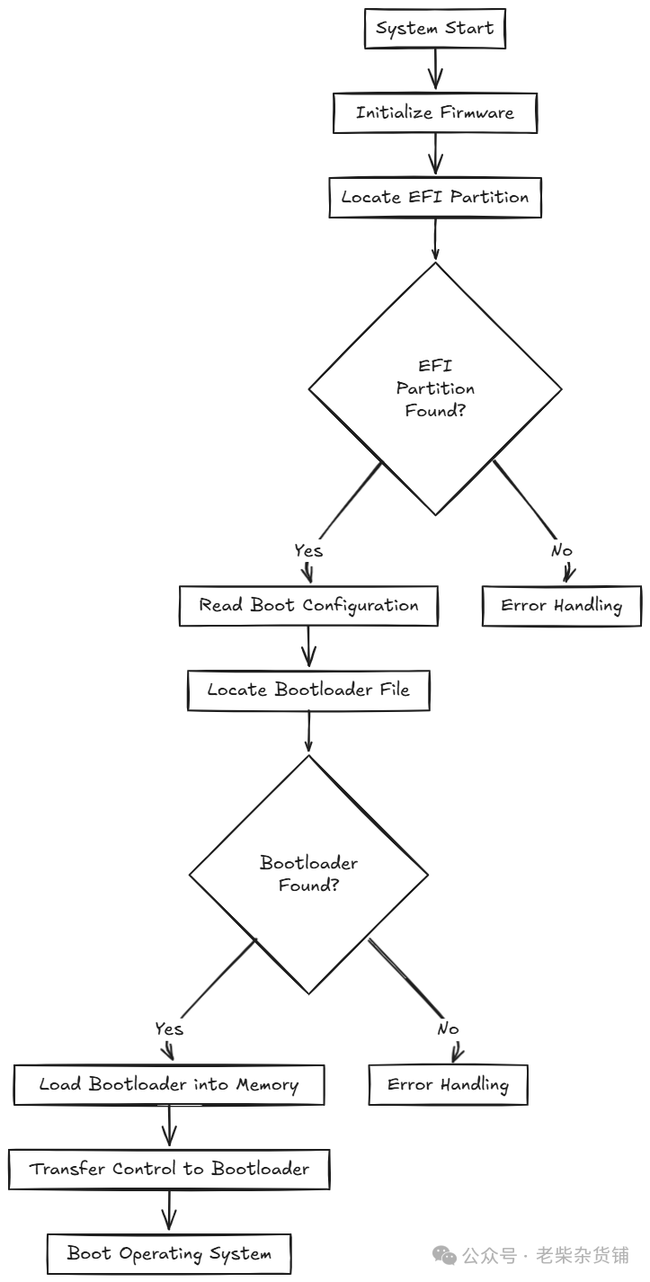 从 EFI 系统分区加载默认引导管理器(如 BOOTX64.efi)。