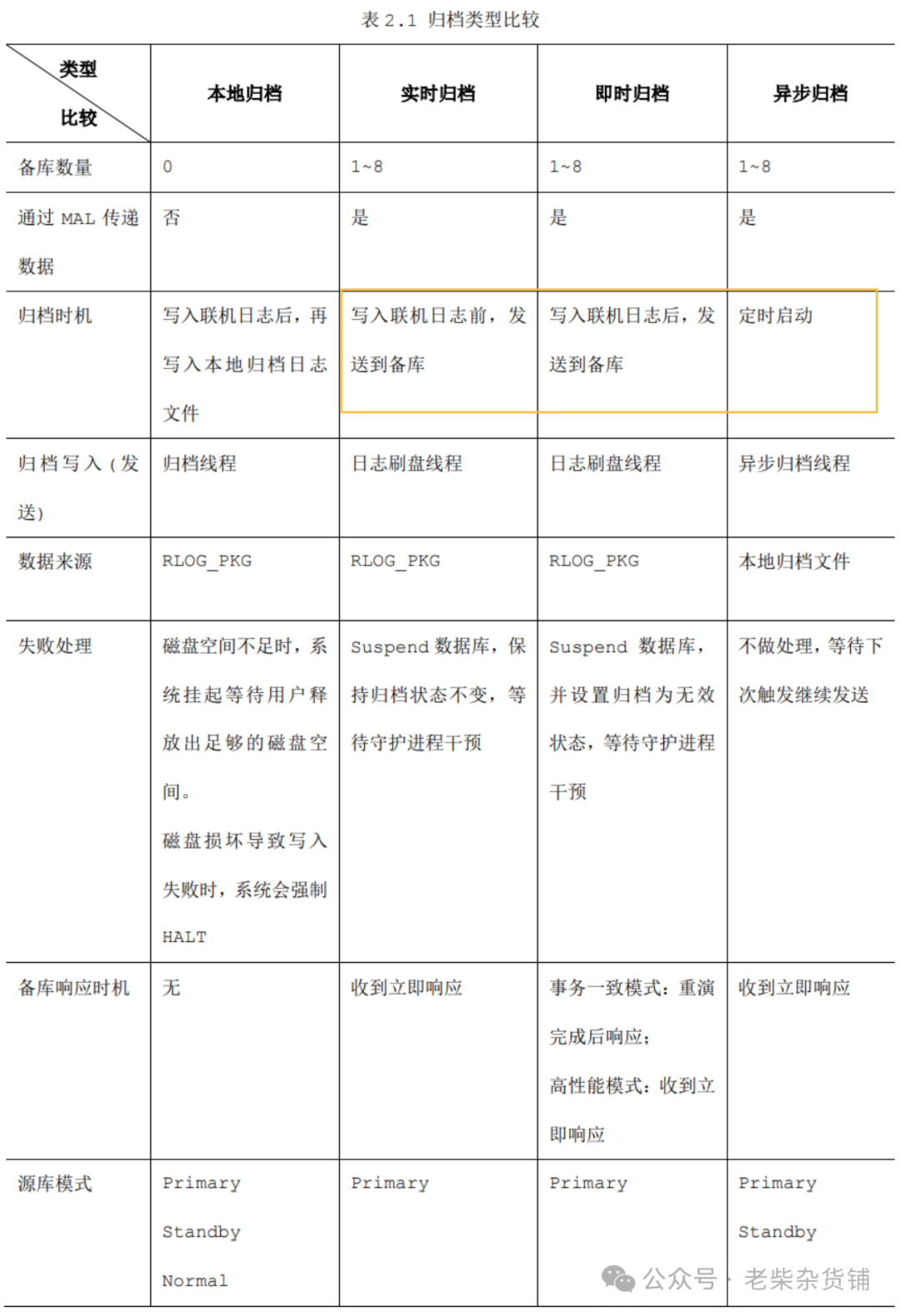 实时归档(Realtime):在日志写入前发送至备库,降低延迟 。