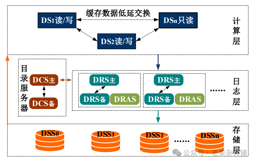 日志层:DRS接收变更日志并转发,DRAS备份日志确保数据一致性 。