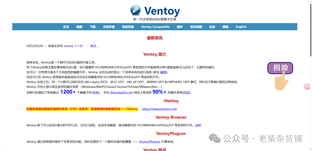 下载ventoy:https://github.com/ventoy/Ventoy/releases
