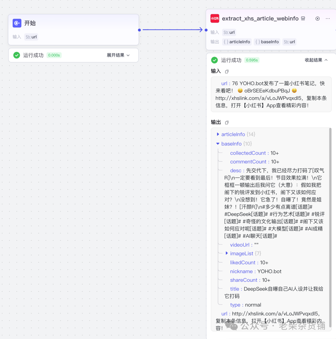 基于输入的小红书文章的URL,提取小红书文章网页详细信息,包括作者信息、文章标题、内容、图片链接、视频链接、点赞、收藏、分享、评论等信息