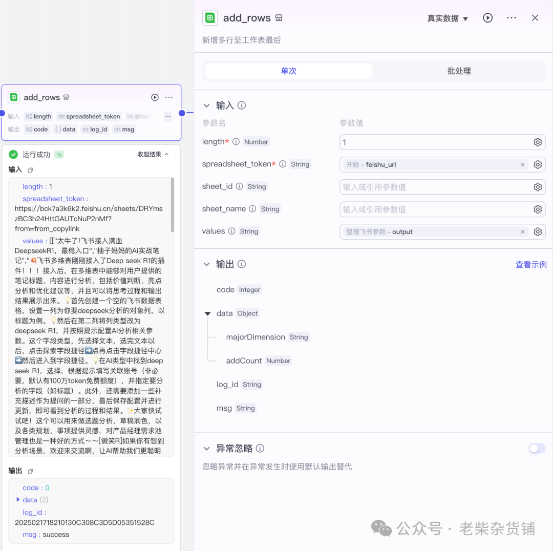 "output": "太牛了!飞书多维表格已接入满血Deepseek R1,稳定、满血、靠谱,这是简明流程。"
