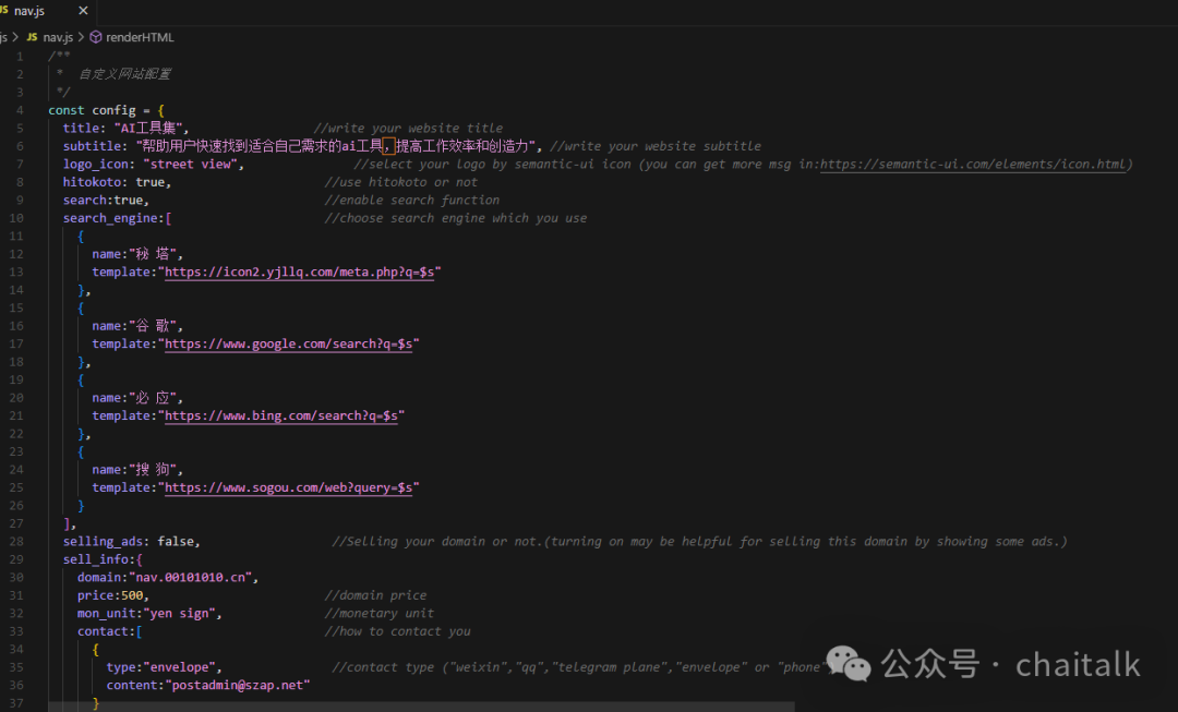 成功部署 CF-Worker-Dir 项目后,接下来就是对导航页进行个性化定制。打开项目文件夹,找到配置文件(通常是config.js),这个文件包含了导航页的各种配置信息。
