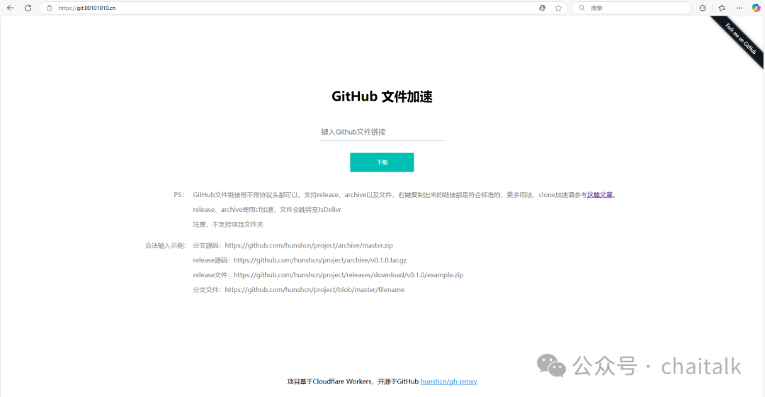 gh-proxy:Workers加速Github的项目,源码地址为https://github.com/hunshcn/gh-proxy,实例地址为https://gh.api.99988866.xyz/[^1^] 。