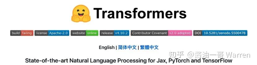 Warren这里贴了Transfomers库在GitHub的官方介绍,就不再赘述。