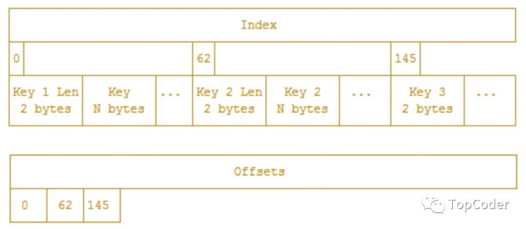 由于Index中各个key长度不定,因此使用offsets字段进行二分搜索,offsets数组中储存的是对应Index中key数据偏移量。TSM中的Index字段也是定长的,也是可以执行二分查找,找到要查询的数据的 BlockIndex 的内容,然后根据偏移量以及 block 长度就可以从 tsm 文件中快速读取出一个 block 数据。