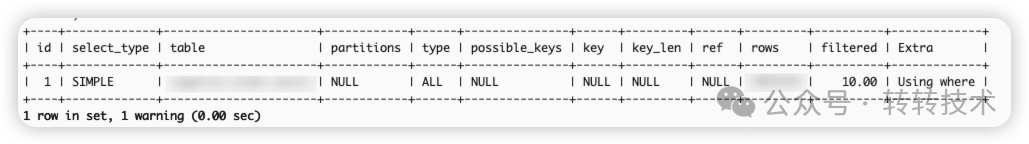 作为有“临床经验”的老司机,第一直觉是先用explain分析。explain用了毫秒级的时间就输出了这样一份执行计划,果然它很快,两分钟都不到。