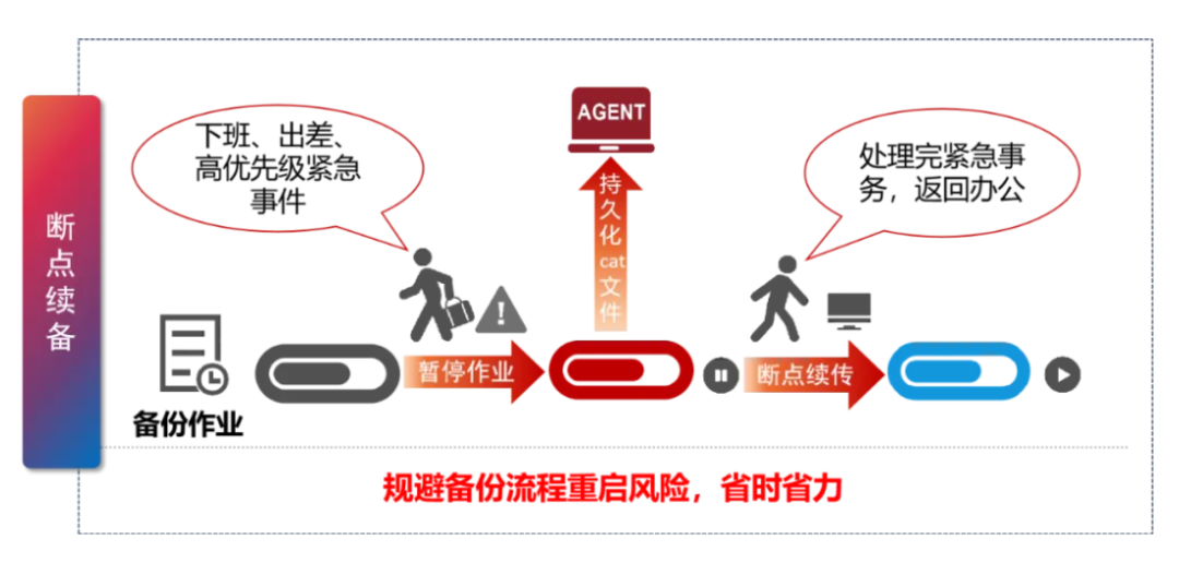 允许用户在个人数据备份过程中随时暂停备份任务,并支持从上次中断处继续备份作业,直至完成剩余部分。这一功能有效提升了备份效率,规避了因紧急要务导致备份作业重启的难题,为用户提供了一种更加灵活、高效的备份解决方案。