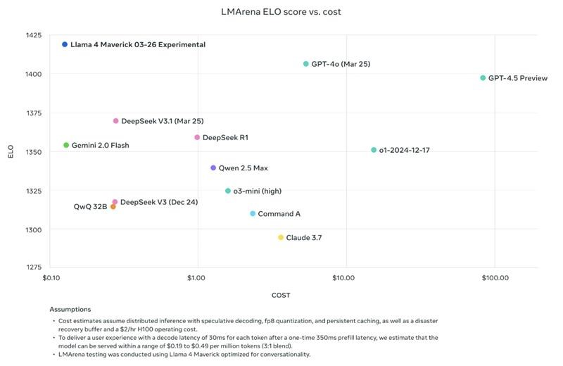 作为一款通用型大型语言模型,Llama 4 Maverick 拥有活跃参数 170 亿、专家网络 128 个、总参数量高达 4000 亿,相较于 Llama 3.3 的 70B 模型,它在保持高质量性能的同时,具备更高的性价比。
