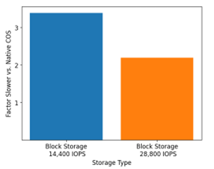 云原生存储(COS)的主要优势之一是容量大。考虑到测试中使用的计算量,对于性能优化的配置来说,10TB 的活跃数据集是一个合理的大小。