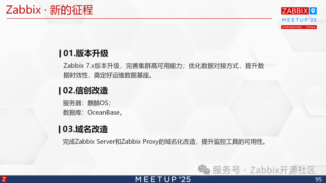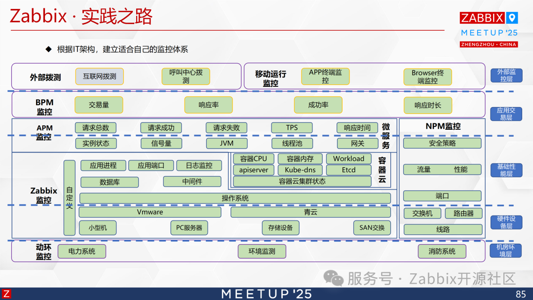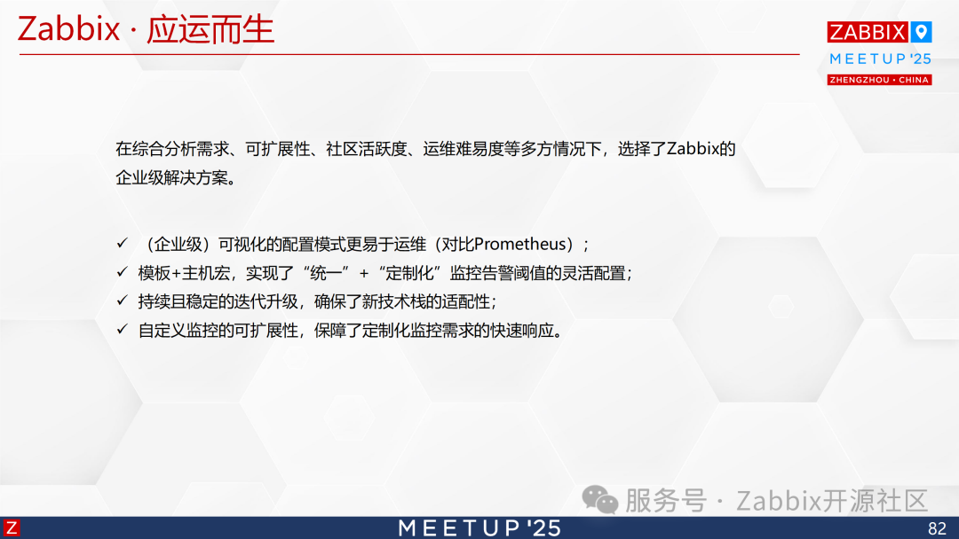 基于可扩展性与自主可控需求,团队选定支持企业级可视化配置的开源工具Zabbix,其核心优势在于: