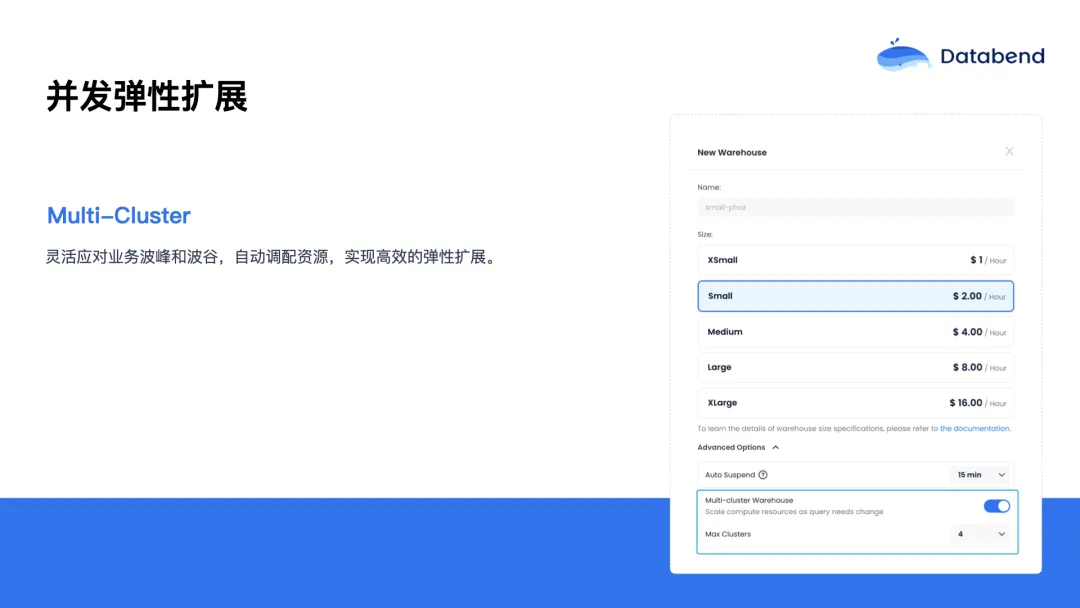为此,Databend Cloud 提供了强大的 Multi-cluster 弹性能力: