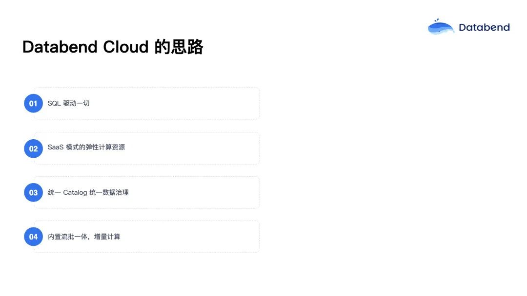 Databend Cloud 的目标就是简化整个数据架构,让用户能够更专注于业务本身的数据需求,而不是被底层技术复杂度所困扰。