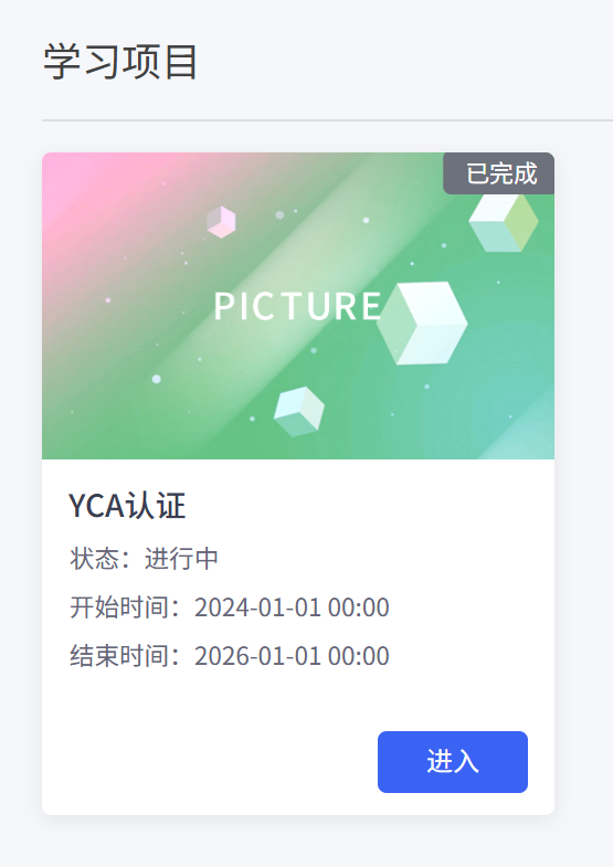 考试链接:注册账号后,登录培训平台-【YCA认证】学习项目查看