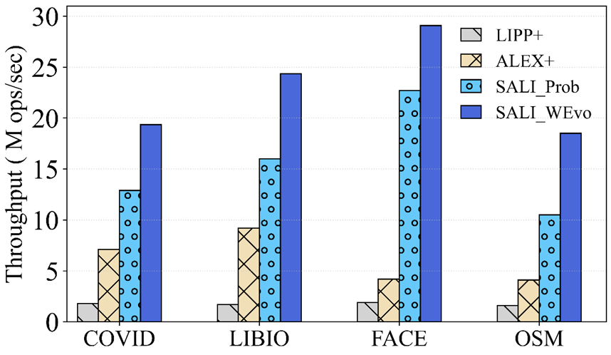 SALI框架包含基于概率的轻量级统计维护方法和自适应进化策略。基于Mod.+C(LIPP结构)构建在考虑的选项中具有最高的可扩展性。