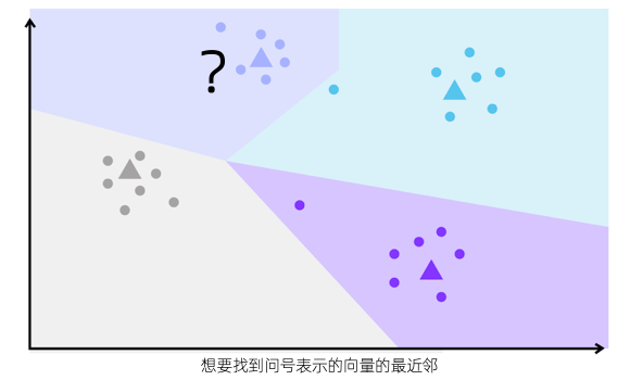 假设要查找由问号表示的向量的最近邻,如下所示: