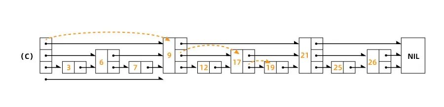 跳跃列表是多层链表,底层是一个连接有序元素序列的规则链表。上面的每个新层会从底层删除一些元素(基于固定概率),产生一个“跳过”元素的稀疏子序列。这个过程比链表中普通的线性搜索快得多。