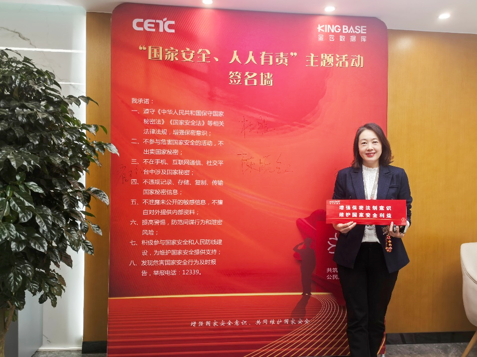 电科金仓总裁杜胜表示,电科金仓将持续推动国家安全宣传教育常态化,将安全理念融入日常管理,号召全体员工争做国家安全的“守护者”,为筑牢国家安全防线贡献力量。