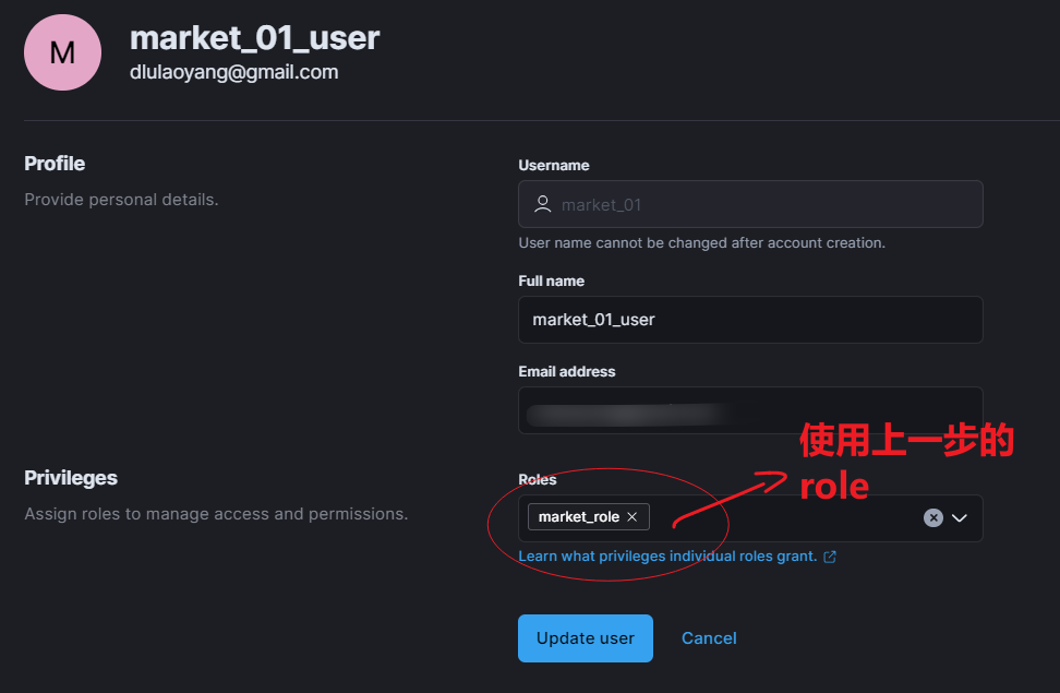 Step3:设置在上述空间下、上述角色下的用户。