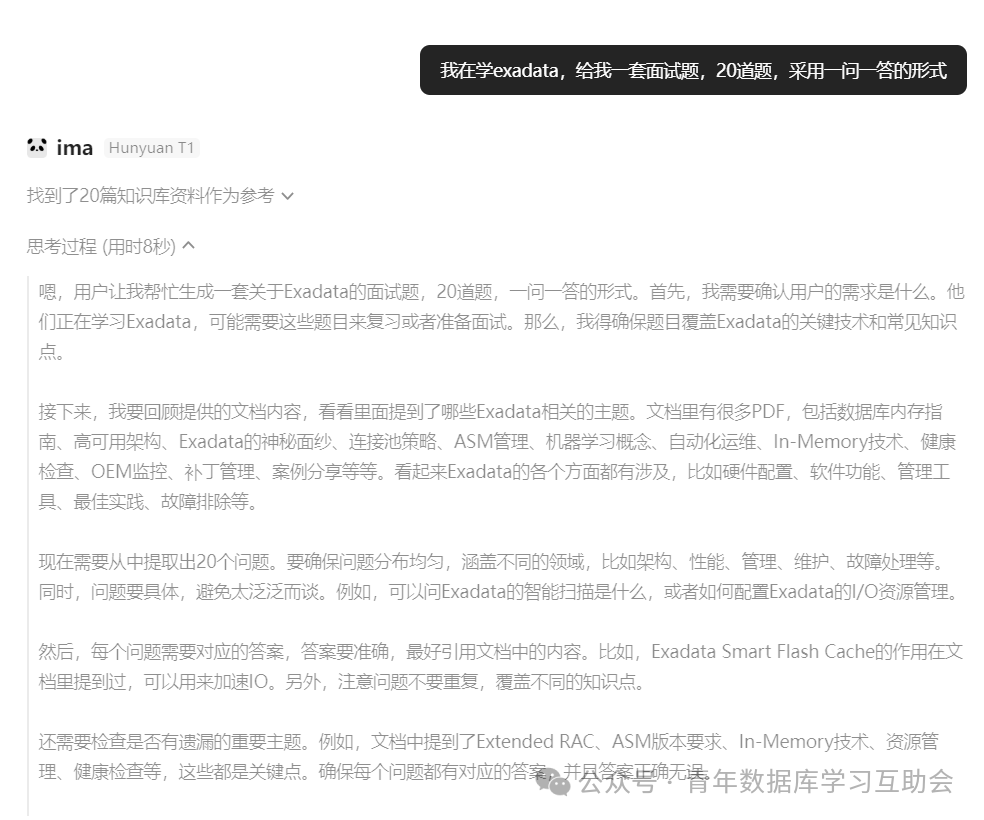 2025 年虽然是信息化爆炸的年代,但有了 IMA 知识库,DBA 们再也不用为资料分散、学习效率低、工作压力大而焦虑了。把时间用在提升自己上,用知识武装自己,从容应对各种挑战,让我们一起在 AI 元年,开启 DBA 的新征程吧!