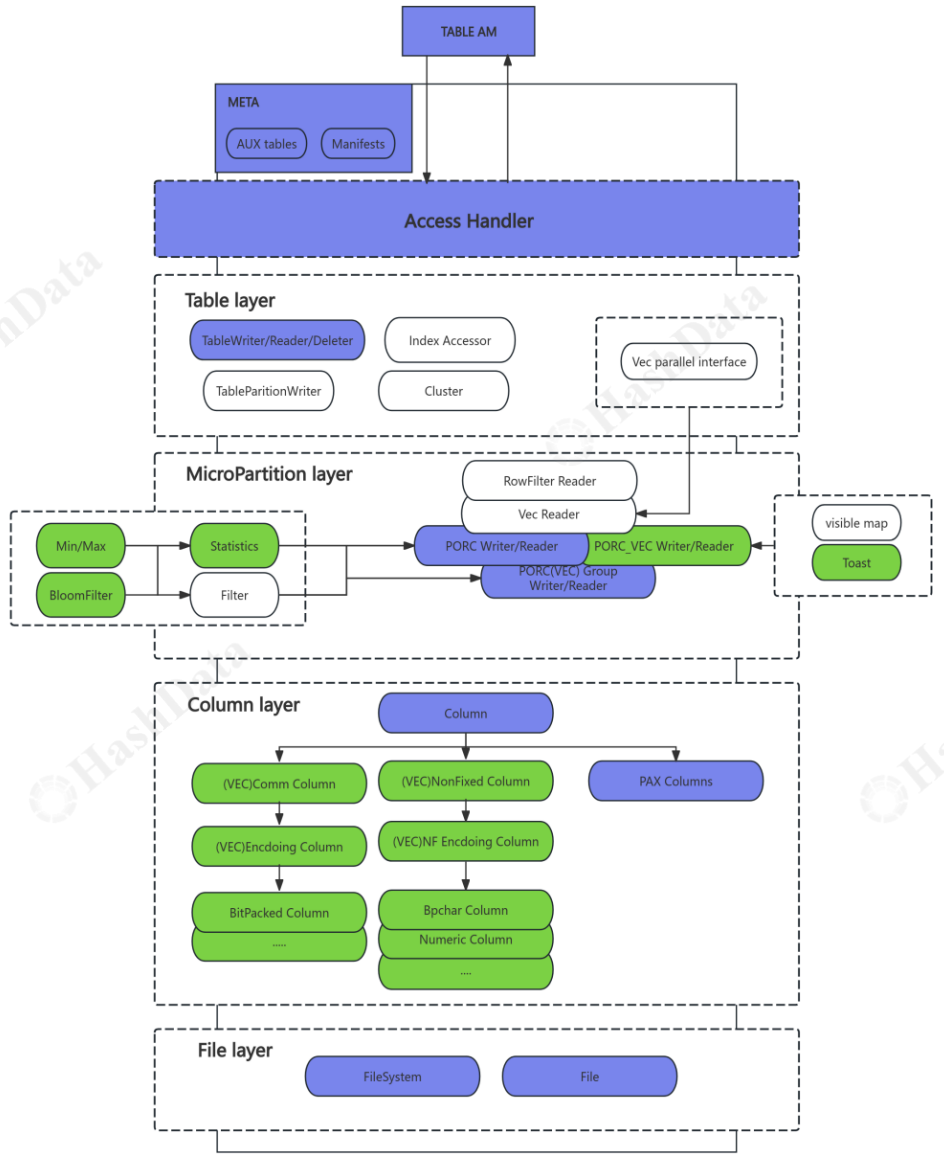 PAX 的架构分为多层,各层协同实现高效的数据管理:
