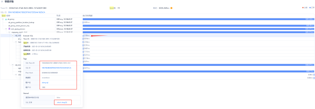 该功能可以追踪用户的 SQL 请求在数据库全链路过程中,在不同组件、不同阶段执行的相关信息,并以可视化方式展现给用户,从而帮助用户快速定位问题所在位置以及快速精准地发现组件内部问题。