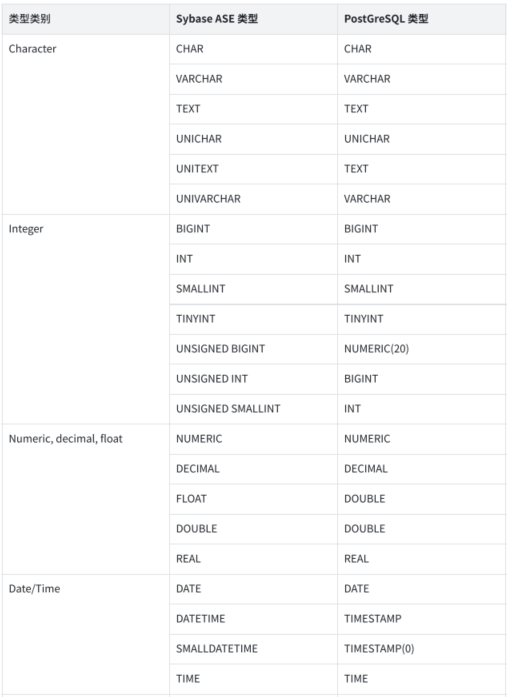 在本案例中,PostgreSQL 的数值范围相对较小。然而,经过确认,本次迁移中 Sybase ASE 的 UNSIGNED BIGINT 字段内不存在数值大于 9,999,999,999,999,999,999 的数据,因此该映射方式对实际业务未造成影响。
