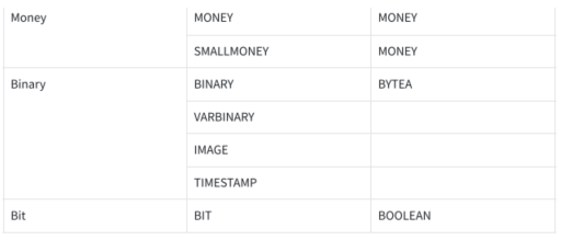 Sybase ASE 的 TIMESTAMP 类型为非标准实现,其本质是用于行版本控制(row versioning)与乐观并发控制(optimistic concurrency control)的二进制值,不存储实际时间。使用 TapData 进行模式迁移时,Sybase ASE 的 TIMESTAMP 字段类型将被映射为 PostgreSQL 的 BINARY 类型,这样可以确保源数据库的二进制数据得以无损传输到目标库。